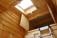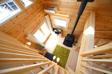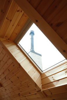 天窓からは、夜空も鑑賞できます。星や月が見るのが好きなので、子どもが大きくなったら、一緒に望遠鏡で星空を眺めるのも楽しみです。陽当たりに加えて、実は夜も自慢なログホーム。ライトアップされた家が美術館のように見えるのです。「そんなに明るい地域ではないこともあって、あまり明るくできないのがもったいない」くらいです。